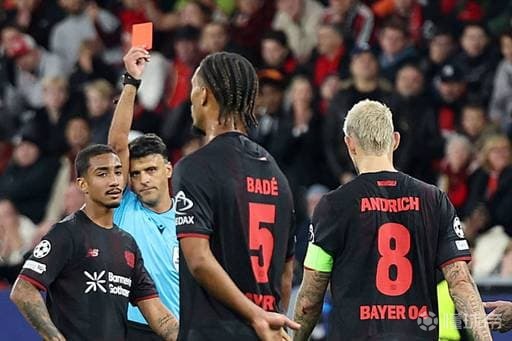 北京时间10月22日,欧冠联赛阶段第3轮,勒沃库森与巴黎圣日耳曼展开对决。本场比赛上半场阶段,勒沃库森球员安德里希被主裁判出示红牌罚离赛场。事件发生于比赛第32分钟,当时双方球员在争抢高空球时,安德里希的肘部与巴黎球员杜埃的面部发生接触。当值主裁判曼萨诺初始判罚为黄牌警告,但经视频助理裁判(VAR)系统介入后,主裁判通过现场回放确认,于第33分钟作出红牌罚下安德里希的最终决定。针对该判罚,解说嘉宾